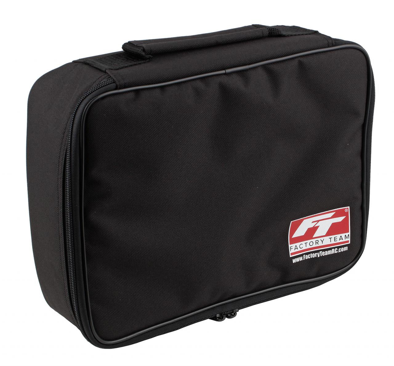 The Factory Team Charger Bag includes enough room for most chargers with ample space for charge leads and power cords. Useful pockets and enclosures hold a variety of items including tools and small parts. A moveable divider allows for a variety of internal configurations. This bag is also suitable for small-scale vehicles and other RC gear.